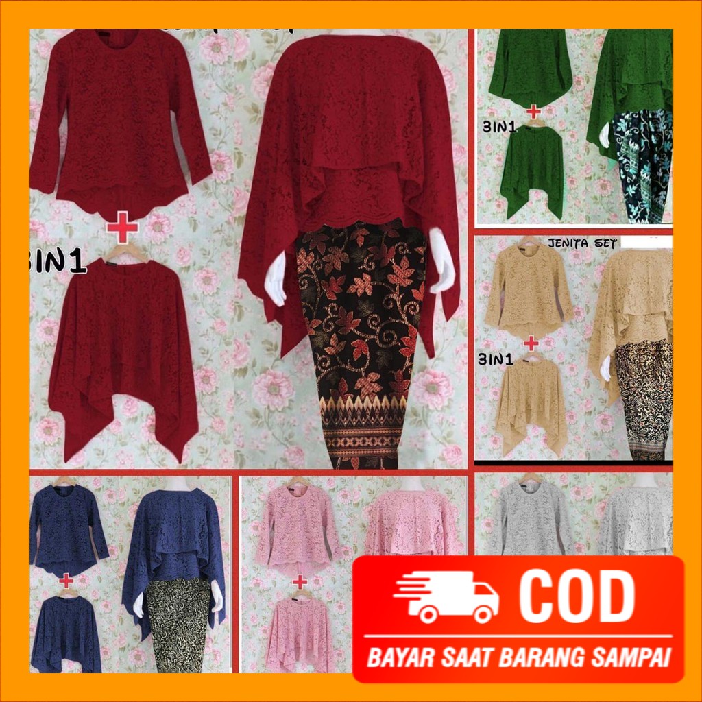 Name: Kebaya Modern Brukat Brokat Jenita 3in1 Set Outer Cape Atasan Rok Batik Pesta Kondangan Dm