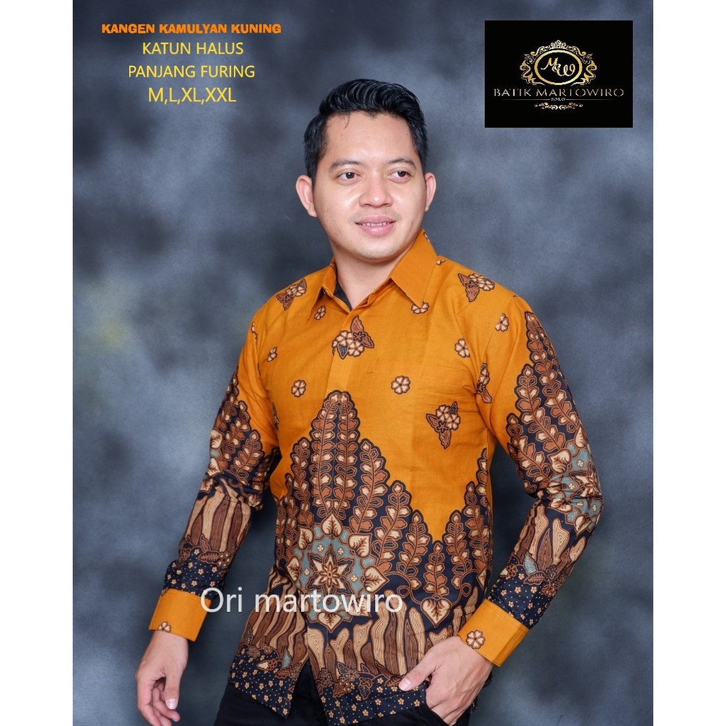 Termurah Pakaian di Kabupaten Muaro Jambi Kemeja Batik Pria Lengan Panjang Kangen Kamulyan Kuning Katun Halus Primisima Full Furing dari Batik Arjun Kab. Sragen