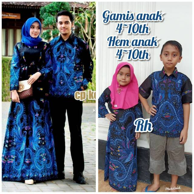 Name: Baju Batik Couple Keluarga Gamis Kemeja 2 Anak Motif Kelabang Biru Seragam Batik Kondangan Terbaru