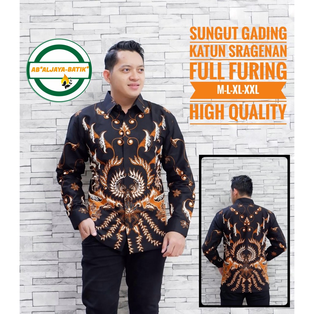 Name: Batik Solo Kemeja Batik Solo Lengan Panjang Lapis Furing Sungut Gading Aljaya Vio Abstrak Aswomulyo