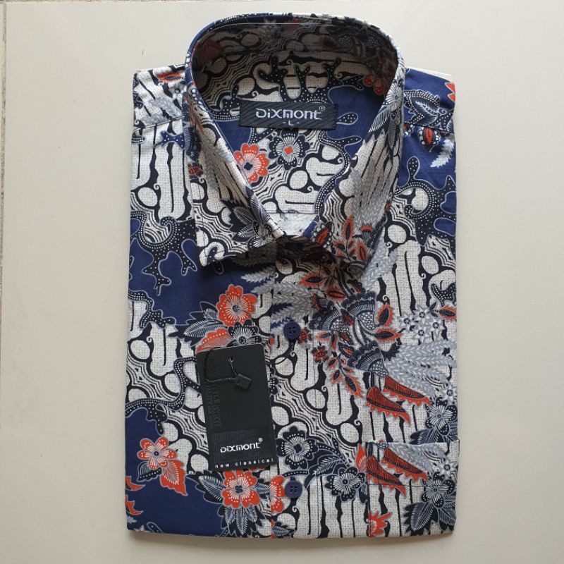 Jual Murah Pakaian di Kabupaten Bintan Kemeja Batik Pria Lengan Pendek Bs87 Katun Motif Modern Dixmont Semi Slimfit dari Raja Motif Kota Jakarta Utara